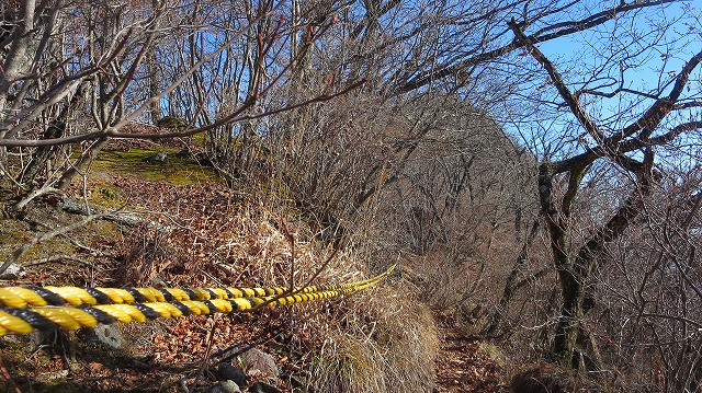電波塔を過ぎると傾斜も急になり転落防止のトラロープがあらわる