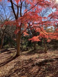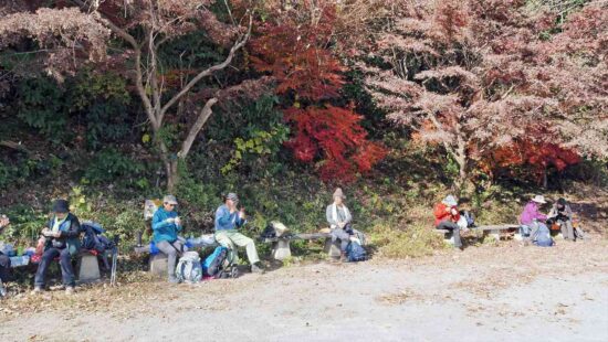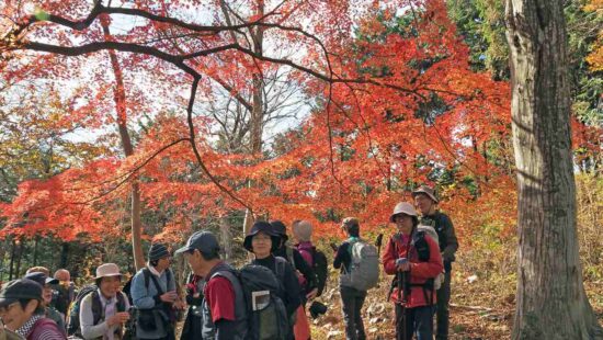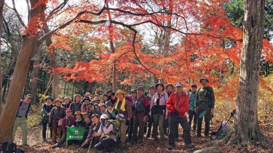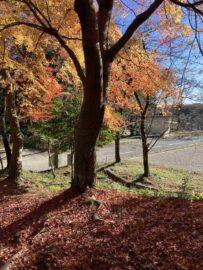 評議原は紅葉の名所で麓から登りやすく、新緑や紅葉の頃は、ハイキングする人が多く人気のコースです。今年は昨年より紅葉が早くほとんどが散り大木の一本のみが散らずに残っていました。