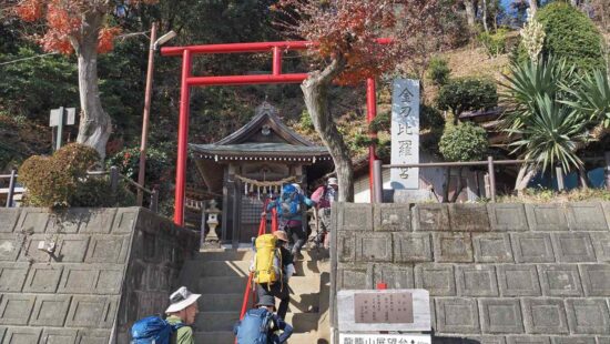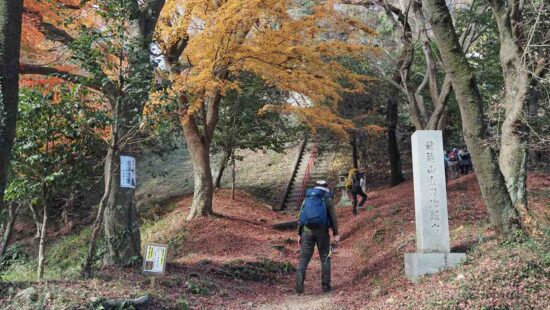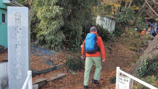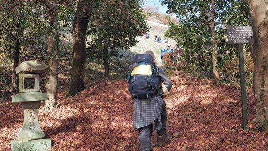 晩秋から初冬へと季節が移り 朝は冷え込みましたが日中は風も無く気温も上がりハイキング日和でした。小松丘陵入口には金毘羅宮参道入口の目印の石塔があり分かり安い。