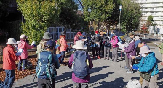 円林寺前バス停から少し歩き広場でリーダー挨拶。