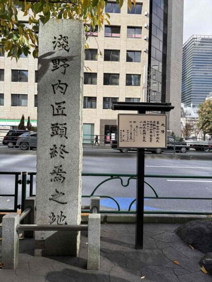 (元禄十四年十二月十四日田村右京太夫屋敷跡にして自刃せしる所)