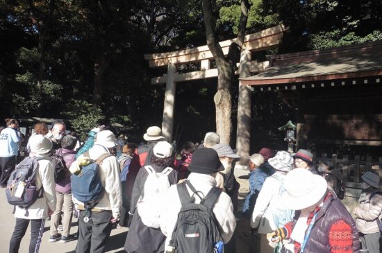 ▼コース:JR原宿駅西口(10時30分集合)→南参道→明治神宮(11:00)→宝仏殿(11:40~12:30)昼食→代々木ポニー公園(12:40)→代々木公園(13:10~13:48)解散→原宿駅