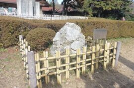 夫婦楠 左の楠は一本に見えますが二本の楠が合わさって、一本の木に見えています。二本の楠は、しめ縄で結ばれています。縁結び、夫婦円満、家内安全の象徴として親しまれています。