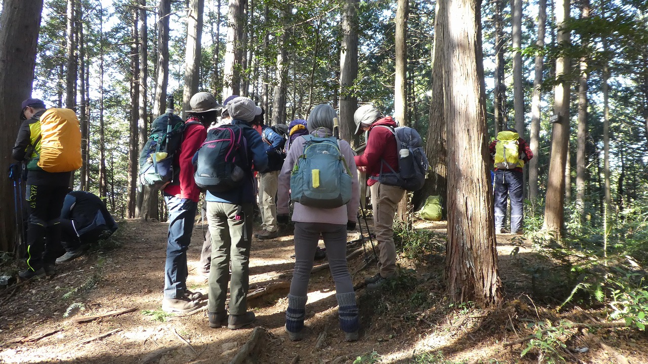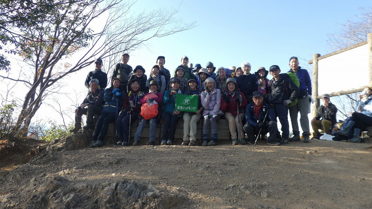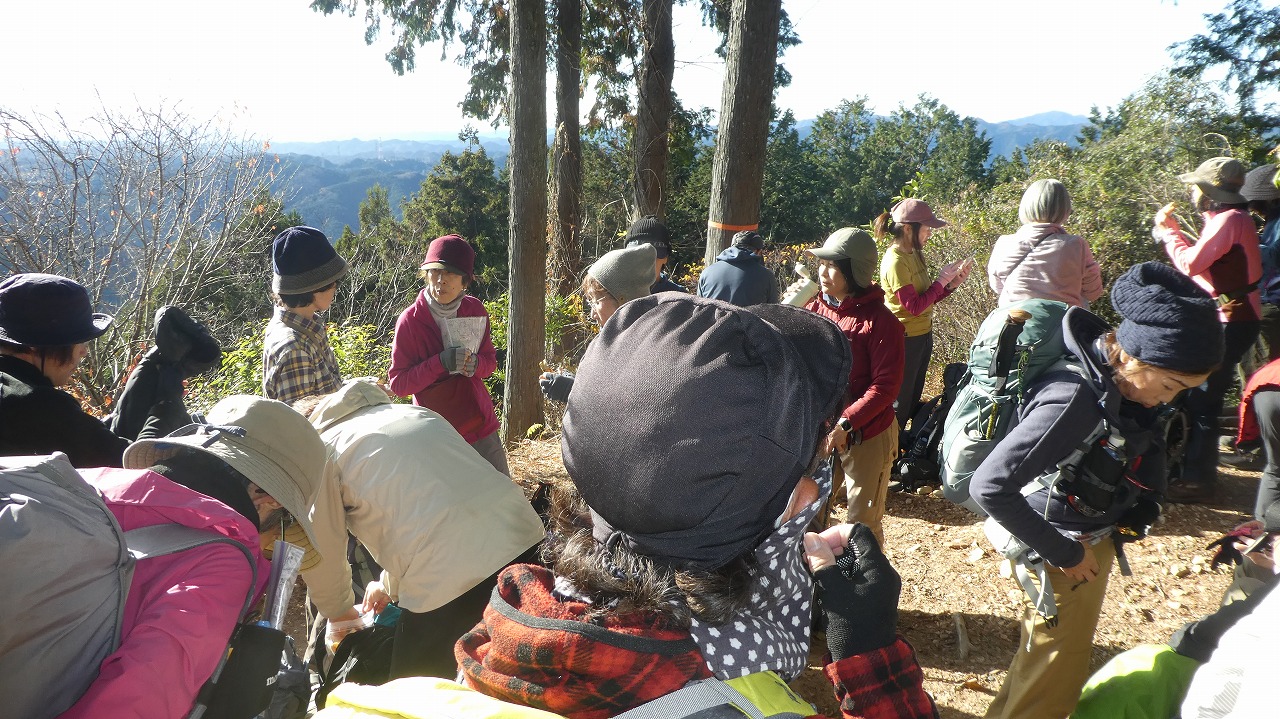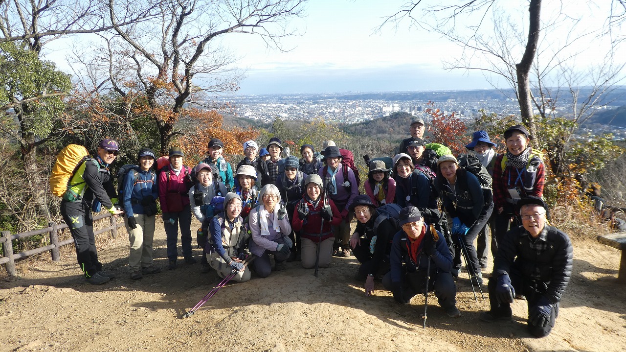 山川Lコメント:「今年最後のコメントです。冬至を目前にお日様と[4]の勝負をしてみました。行程時間不足に備えて、エスケープ先のバス停とバス時間も持参して出発します。結果は大成功!参加者の足並みが揃って余裕ありの多峯主山と天覧山着。笑顔で素晴らしい展望を楽しみました。参加者皆さま方のご協力に感謝致します。