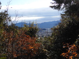展望山からの上野原市街地 昨日の強風で針葉樹以外は落葉し貴重な紅葉