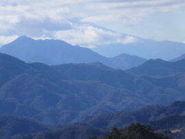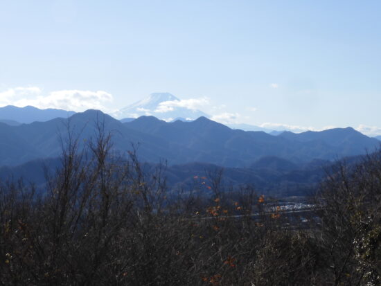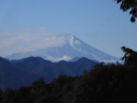 要害山山頂 青空に初冬の白富士が白雲に覆われているが美しい‼