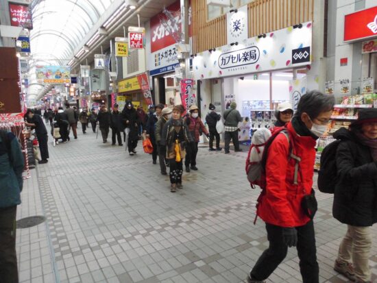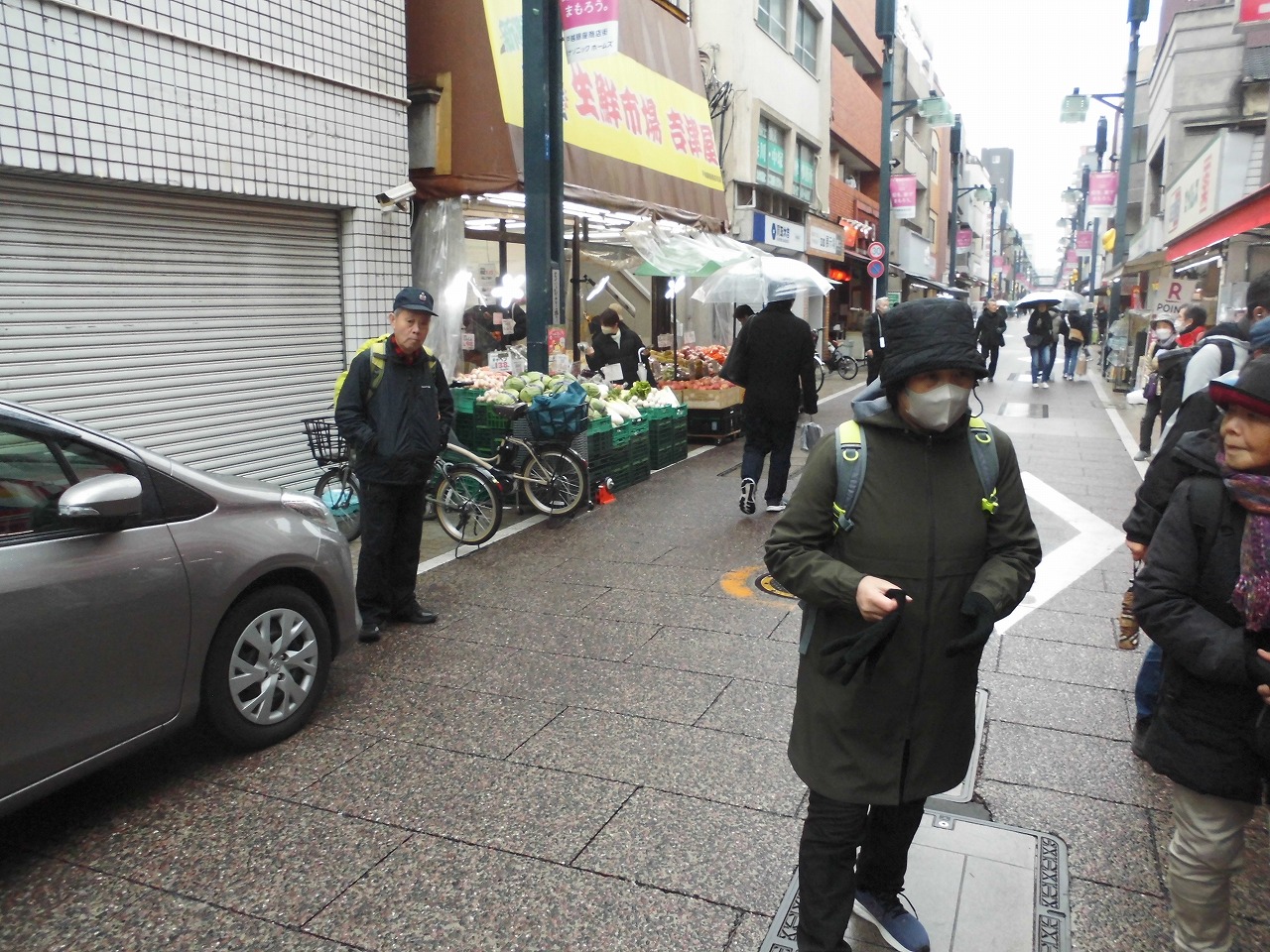 午前中小雨予報で実施するか悩みました。午前中歩く予定の武蔵小山商店街はアーケードがあるので雨は大丈夫と思い実施しましたが、何人の会員の方が来てくれるのか全く予想出来ず、もしかすると数人しか来てくれないのではないかと思っていましたが、予想外?23名の方が来て頂き実施した甲斐があってホッとしました。昼食の時間には雨もあがりそれ以降傘もささなくて山行が出来ました。戸越商店街では今までで一番熱いたこ焼きを皆さんで食べて(口の中が火傷しそうになりました。)ちょっと身体も温まりました。寒く小雨の中、参加して頂きました会員、SL、協力者の皆様に感謝、感謝、感謝、感謝、感謝です。 岩間英之