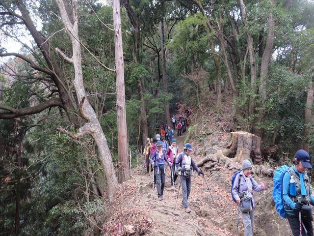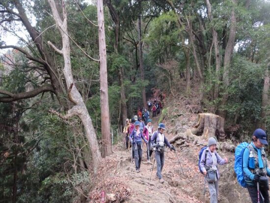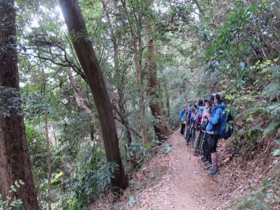 参加者多くお二人の参加Lのお陰で二班に分けることができました。幸いに不調な天気予報で、いつもの混雑はなく、人出の少ないコースを選んだこともあってご迷惑をかけずに済んだと思っています。