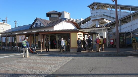 東武線越生駅に集合。個人やグループの参加でにぎあう。