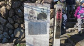 甘酒の接待と右、「山岡鉄舟献額の山門」をくぐり次の「弘法山」へと向かった