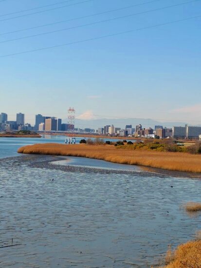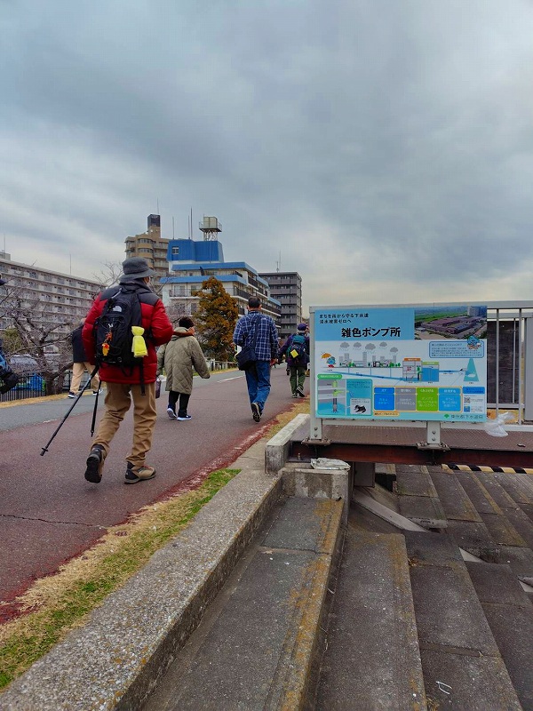 多摩川サイクリングコースを気持よく歩く。