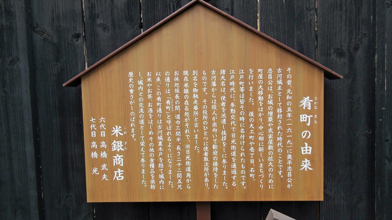 江戸時代から両替商を経て、その後酒問屋として栄えた店でしたが、時代と共にその営みに幕が下ろされ、市民の憩いの場、来街者の回遊拠点としてのミニギャラリーやホール、資料室、飲食、物販を含む施設として生まれ変わった。敷地内には店蔵(旧古河城文庫蔵)、袖蔵(旧古河城乾蔵)、文庫蔵、石蔵、中蔵、主屋があり、店蔵は江戸時代より両替商後に酒問屋を営んだ坂長の店部分で旧古河城の文庫蔵を移築したと伝えられている。※平成12年に国の登録有形文化財に指定された。