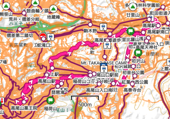 コース :高尾駅南口9:05-高尾霊園9:35ー9:50四辻10:00-