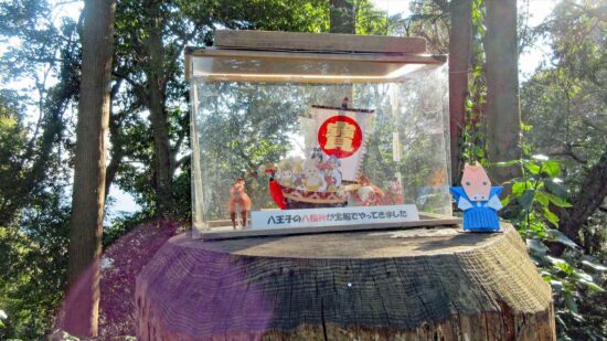 「八王子の八福神が宝船でやってきました。」と書かれて、切り株の上に立掛けられていました。