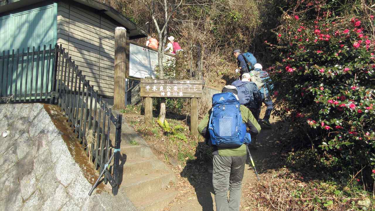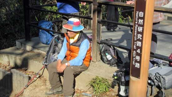 公衆便所前でひと休み 4号路(吊り橋コース)~浄心門へ 山頂は混んでいるのでパス