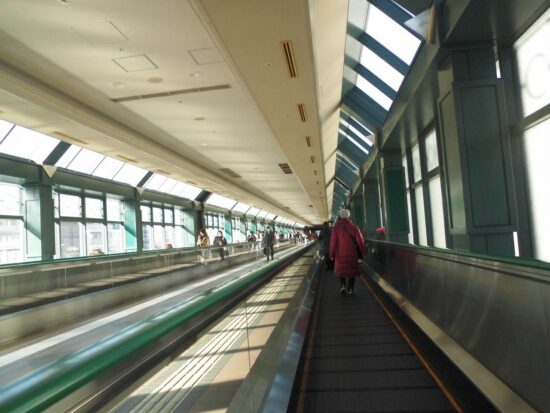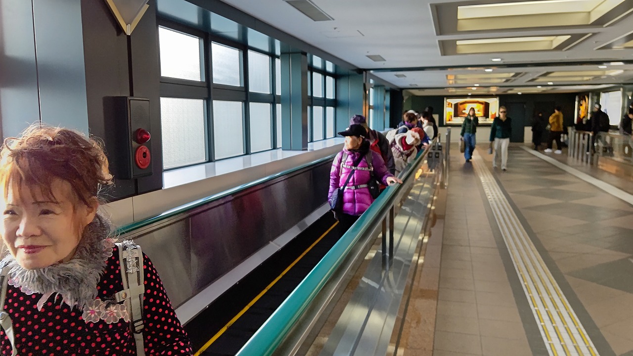 恵比寿スカイウォーク(恵比寿スカイウォークは、JR恵比寿駅東口と恵比寿ガーデンプレイスを結ぶ、屋根付きの動く歩道です。)で恵比寿駅に向かう。
