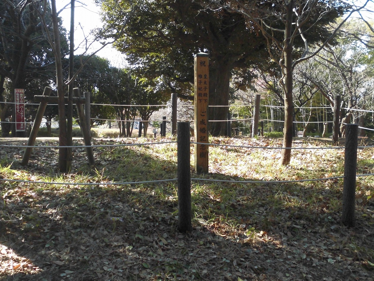 公園内に現天皇陛下のご成婚記念樹。