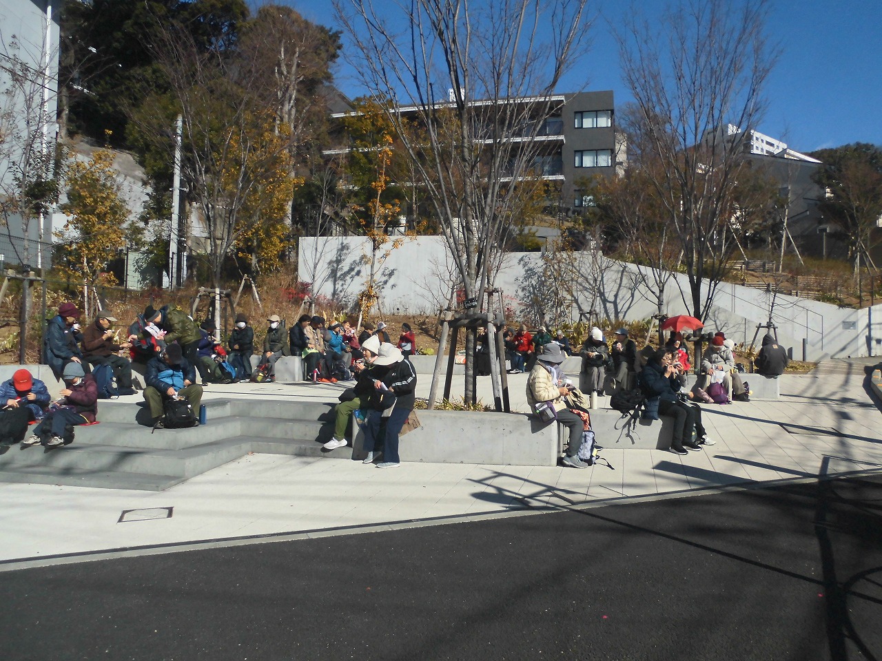 旧朝倉家住宅から目切坂を下った所にある名もなき広場で昼食