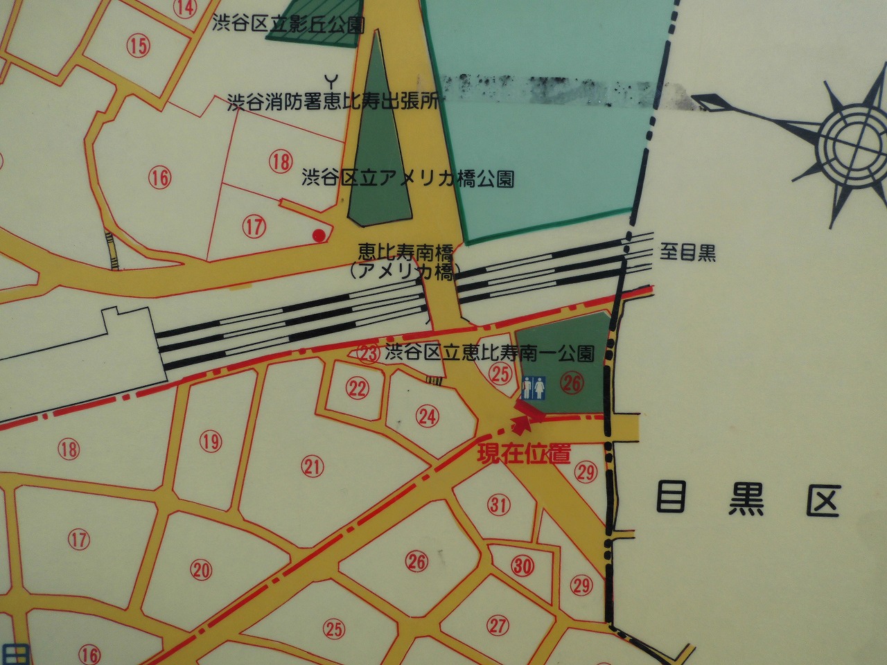 →旧朝倉家住宅近くの名もない広場(昼食12:00~12:50)→目黒川→アメリカ橋→東京都写真美術館