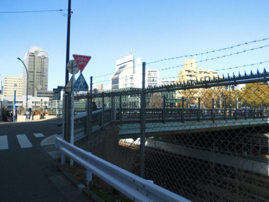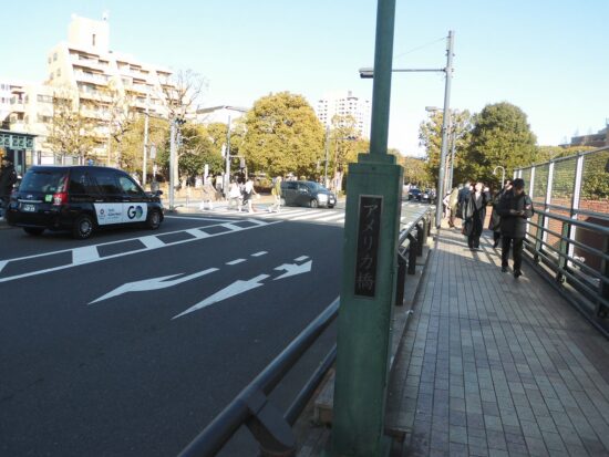 アメリカ橋(山手線目黒駅と恵比寿駅の間にある鉄製の青い橋。正式名称は『恵比寿南橋』だが、1926年にアメリカから輸入されてかけられたことから『アメリカ橋』の愛称で親しまれている。)山川豊の歌でも