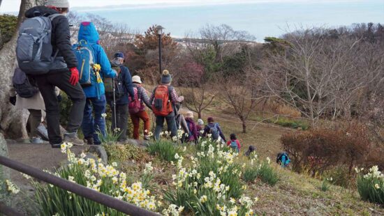 肌寒い中、水仙や梅の花や桜の花が見られました。