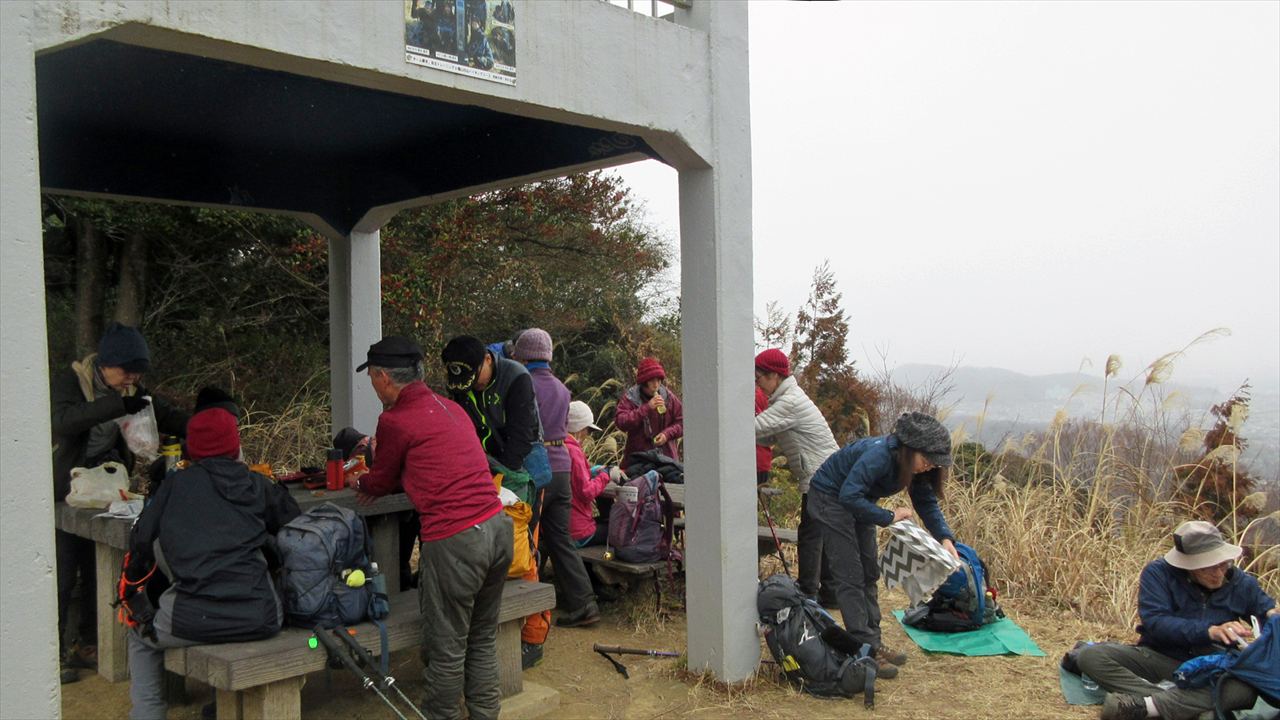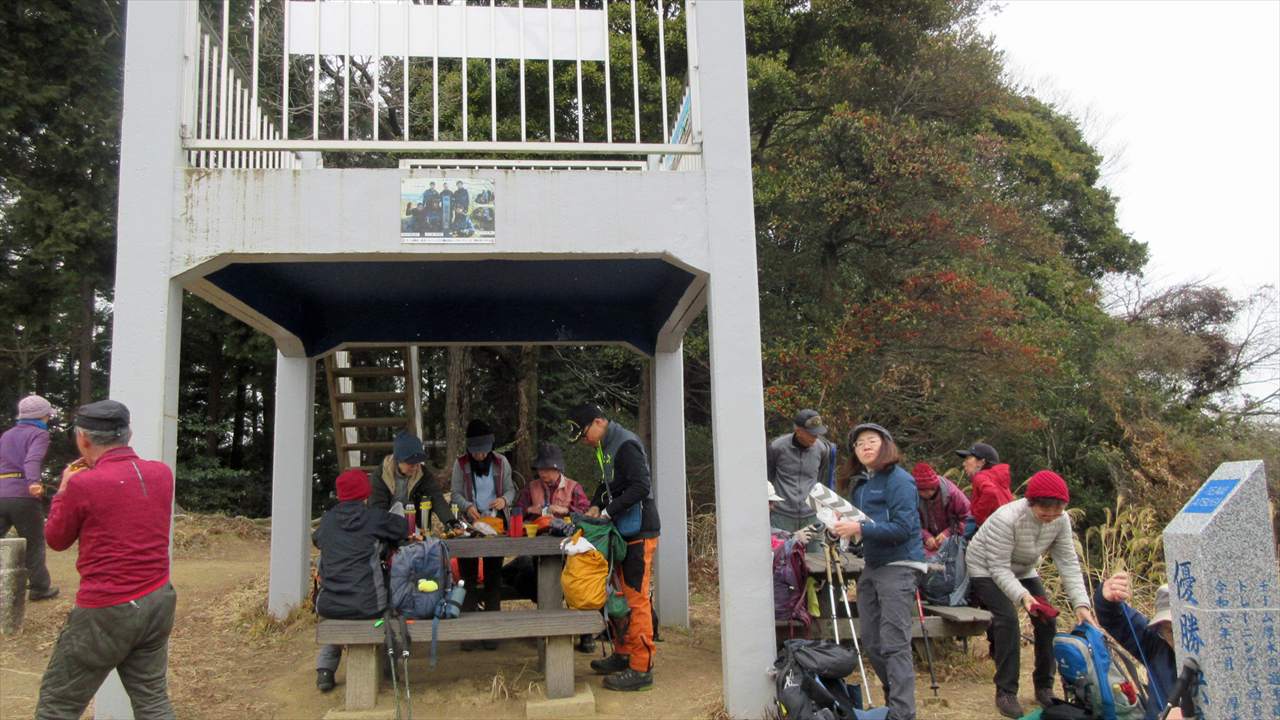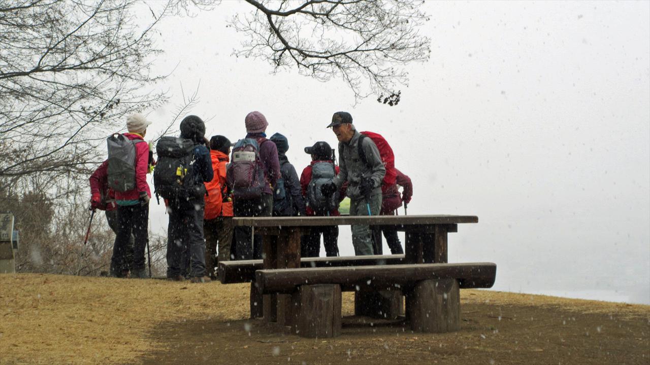 白山展望台283.9m 昼食 温度が前日より10度以上下がって、季節が春から真冬に逆戻り衣服調整が大変だ。