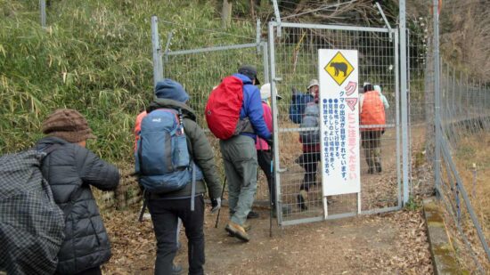 ゲートにクマ出没注意の看板が立掛けられていました。