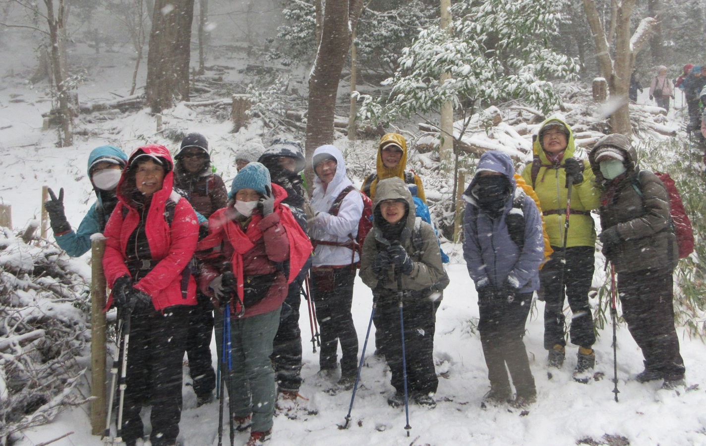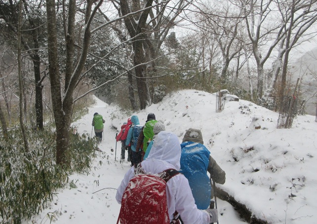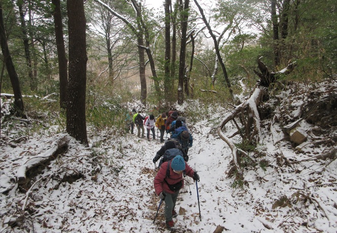 思いもよらない雪の中の山行になりましたが、ベテランのみなさんケガなく無事に下ることができました