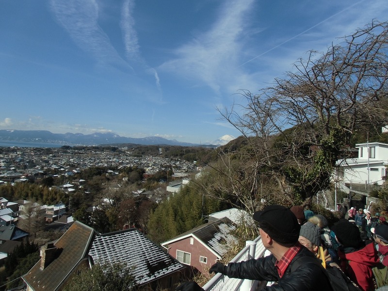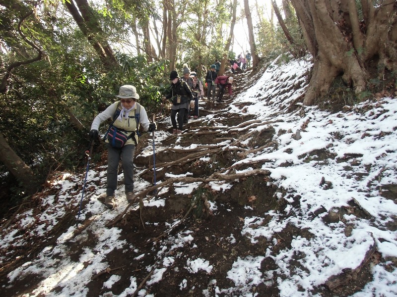 相模湾の絶景……先日の雪が登山道に残り慎重に滑らないようにゆっくりと歩く静かな山道は日常の生活を忘れさせてくれます。湘南平からは真っ白に化粧した富士山や相模湾の絶景を独り占めにできる贅沢な時間を過ごせることができました。最後の男坂は皆さんの協力でゆっくりと安全に降りる事が出来ました。有難うございました。