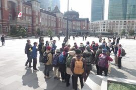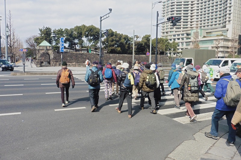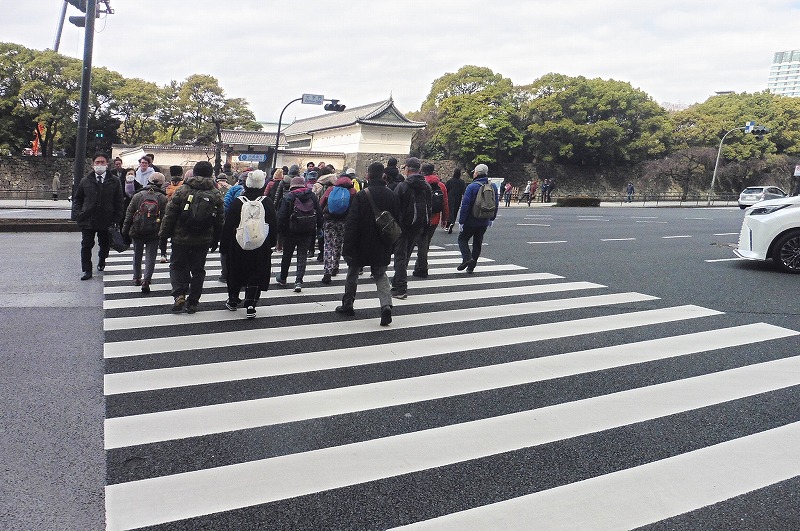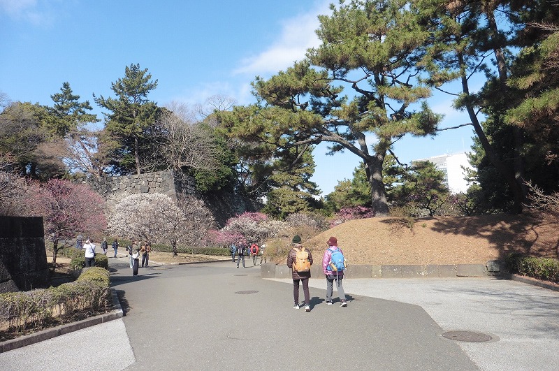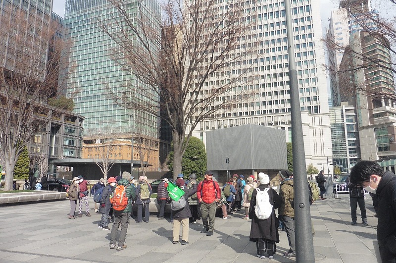 ▼コース:JR東京駅丸の内中央口(10:30)→和田倉噴水公園→大手門→二の丸公園→本丸天守跡(11:34)→北の丸公園(11:58~12:50)昼食→田安門→靖国神社(13:38)解散