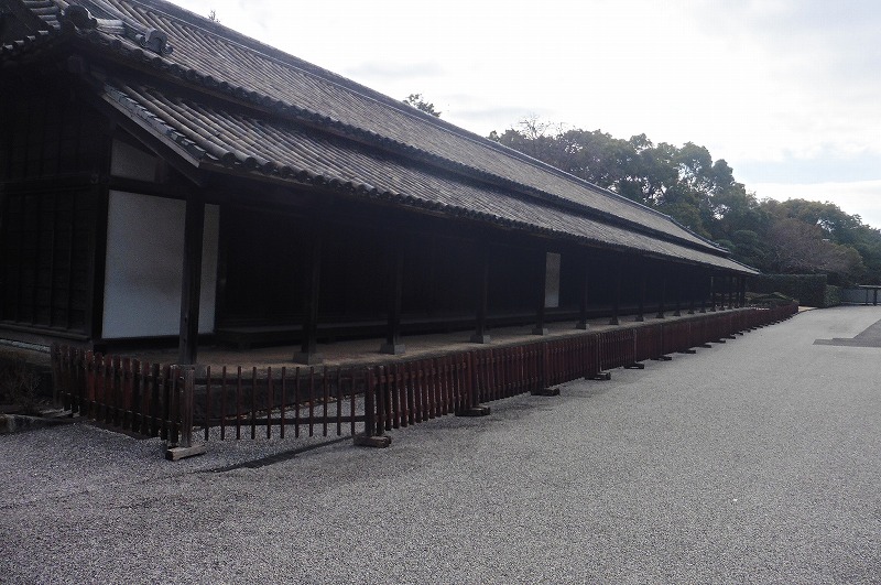 百人番所は三の門を通過した後、本丸へ通じる要所である中之門に進む手前に設けられた番所です。建物の長さは南北45メートルあります。