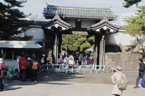 大手門 皇居東御苑入口で手荷物検査(鞄の中を見せる)