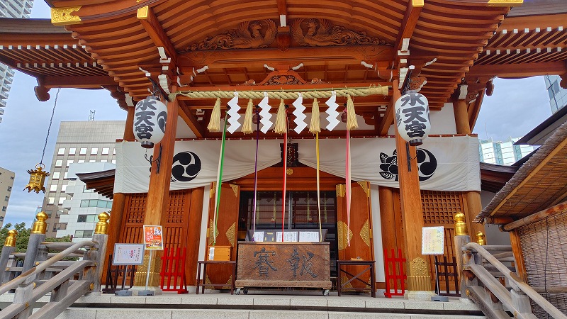 宝田村(当時)の鎮守だった神社が江戸城の拡張に伴い現在地に移転。毎年10月に開催される「日本橋べったら市」が有名です。