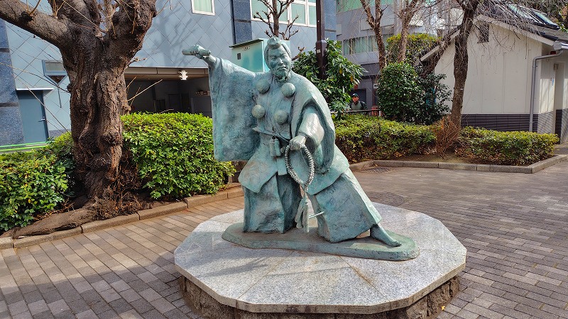 人形町は江戸歌舞伎発祥の地。(旧・市村座、中村座)を記念して建立された武蔵坊弁慶の銅像。