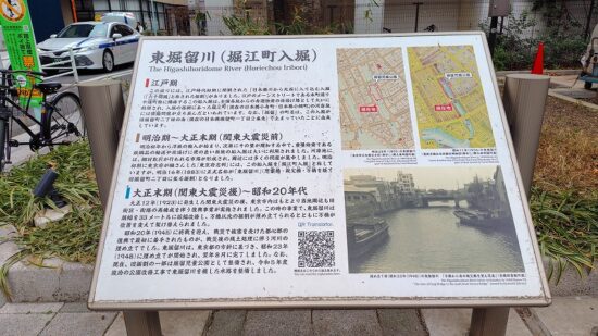 この公園は、その「東堀留川」がちょうど行き止まり(堀留)になっていた場所に位置しています。これが現在の地名「堀留町」の由来にもなっています。