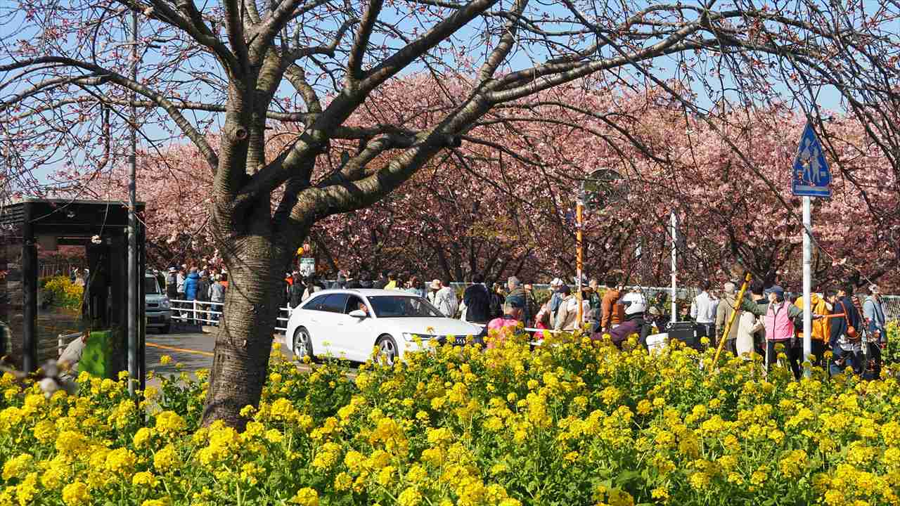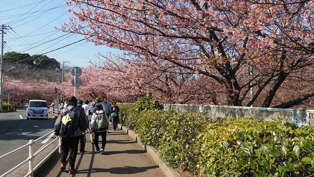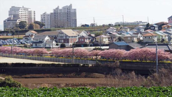 京急線の三浦海岸駅から小松ヶ池公園までの線路沿い約1kmに、河津桜約1,000本と「菜の花」が咲いていた。なお、令和8年2月5日(木曜日)から令和8年3月3日(火曜日)まで「第22回三浦海岸桜まつり」が開催される。