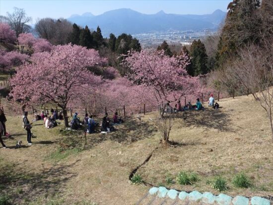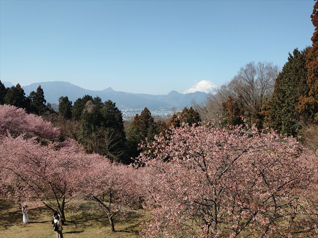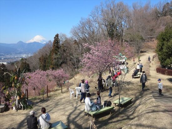 おおいゆめの里 の河津さくら 天気よく暖かく富士山と箱根の山々