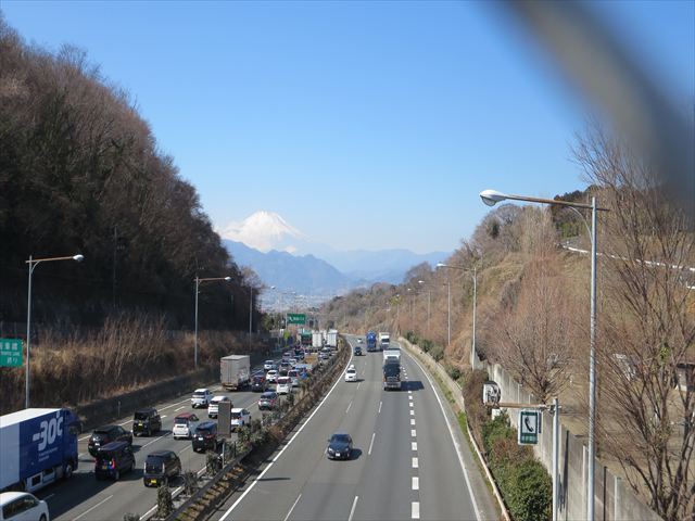 左下に東名道 富士山の景色に誰ともなく「集合写真」の声がかかりました