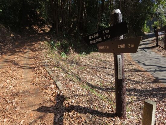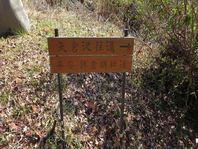 神山から東の集落へ向かって降りる予定も、「富士見塚」へ戻り、歴史のある「矢倉沢往還」を下る