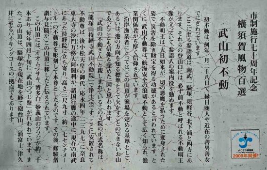 柵に囲まれた中には、海上保安庁武山受信所が建っており山座同定の目印になっている。