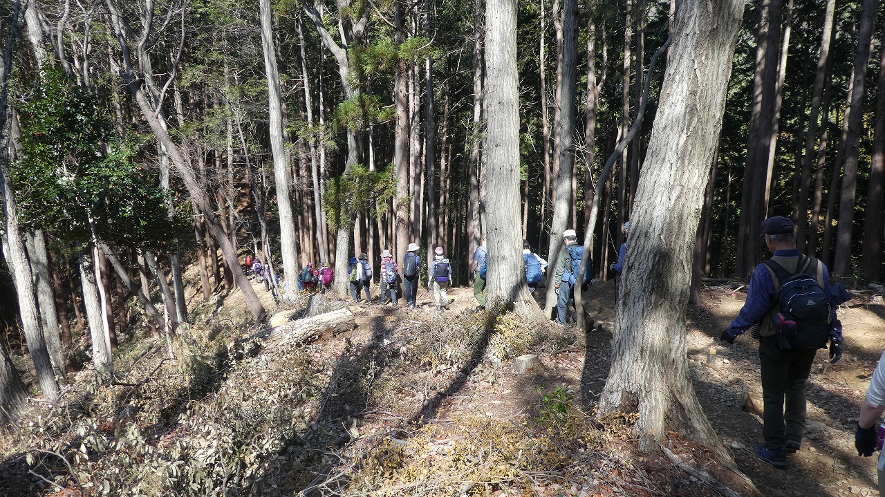 空は青いし、今日は奥武蔵の達人の大先輩もあられるから心強い。まずは下見時に買い求め、美味しかった菜花を登る前にゲット。興味のない方には待つことになって申し訳ないけれど、安く新鮮なものを手に入れられる喜びは格別。山歩きの楽しみの一つとなっています。少し違うルートを達人の案内で歩き、得をした気分も味わいました。間違いそうだと、教えてもらえる、これも始終歩かれている会員さんの参加があればこそ、です。皆さんの足並みが揃いおかげさまで休みも入れやすく、係としては何よりのご褒美です。 ありがとうございました。