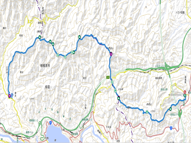 ▼コース : 藤野駅バス停8:04=陣馬登山口8:20→一ノ尾尾根8:40→陣馬山10:20→底沢峠11:30→堂所山11:50~12:15(昼食休憩)→景信山13:00→城山14:00→稲荷山15:00→16:20高尾山口駅(解散)