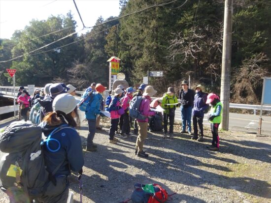 陣馬山登山口の広場にて、リーダー挨拶・コース説明・リーダー、サブリーダー紹介等。