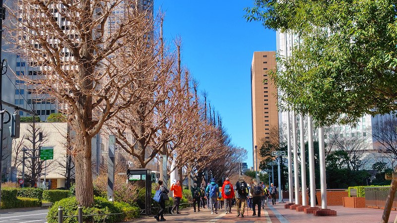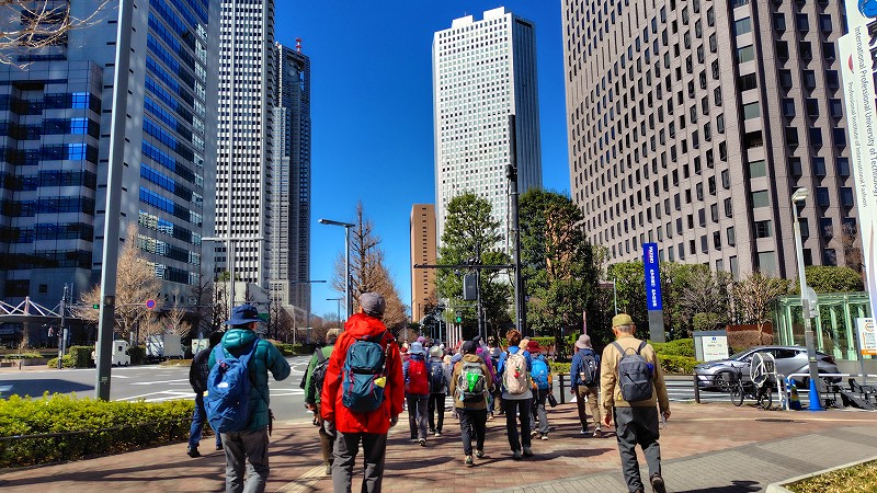 朝方は少し寒かったですが、日中は風も無く穏やかなハイキング日和になりました。心配だった都庁の展望室に行くエレベーターも空いていて、時間もかからず広大な景色を楽しむ事が出来ました。人がゴッタ返していた町中では協力リーダー、協力者、会員の皆様に助けて頂き無事山行を終える事が出来ました。感謝致します。