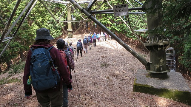 大きな鉄塔の下の尾根道 もう少しで「梅ノ木峠」からの林道に合流だ