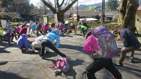 集合は石神前駅。先ずは怪我防止に柔軟体操を入念に行う