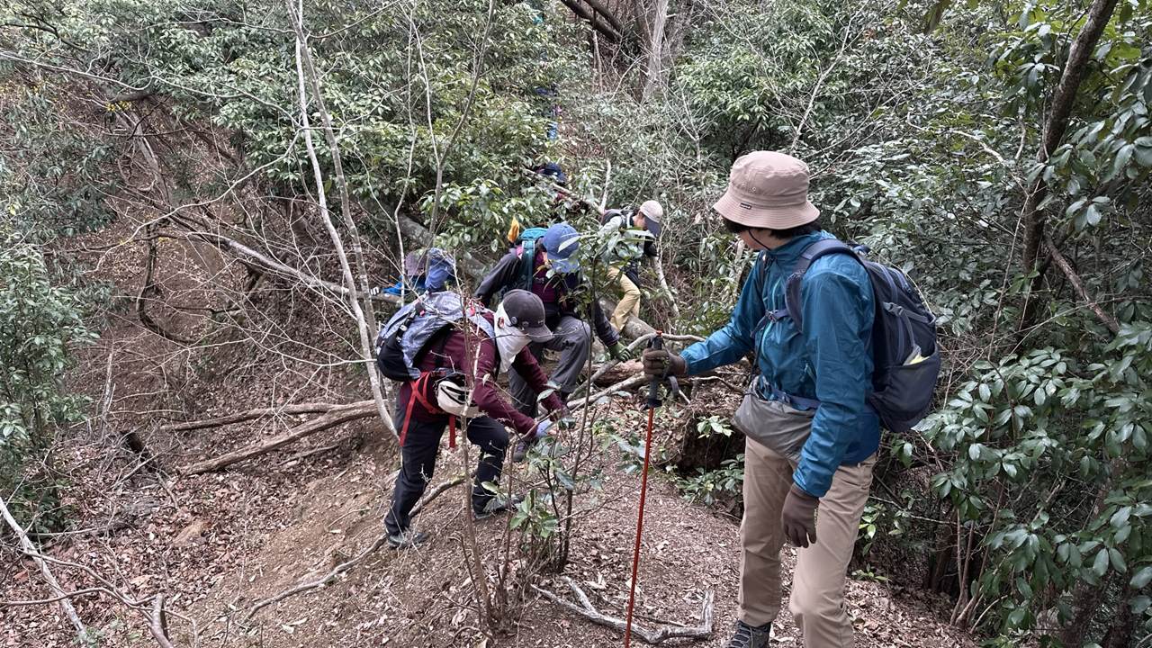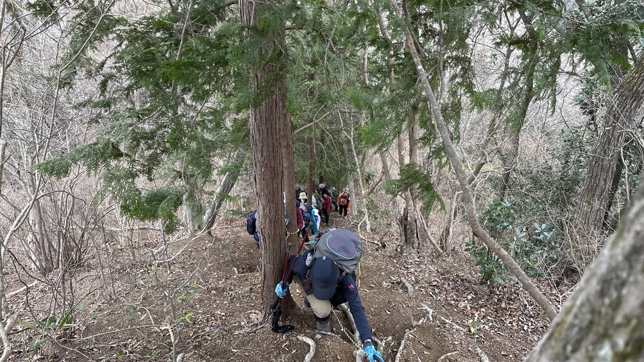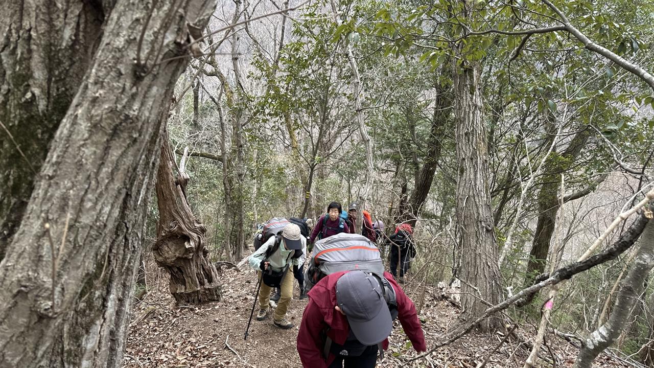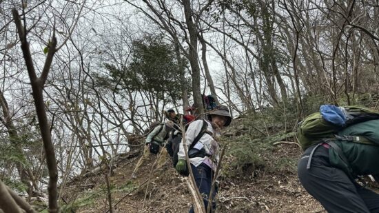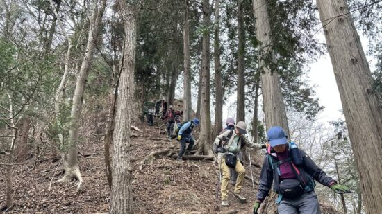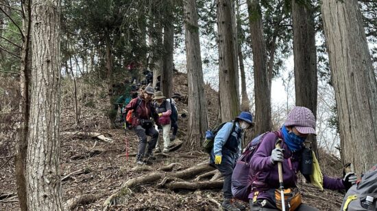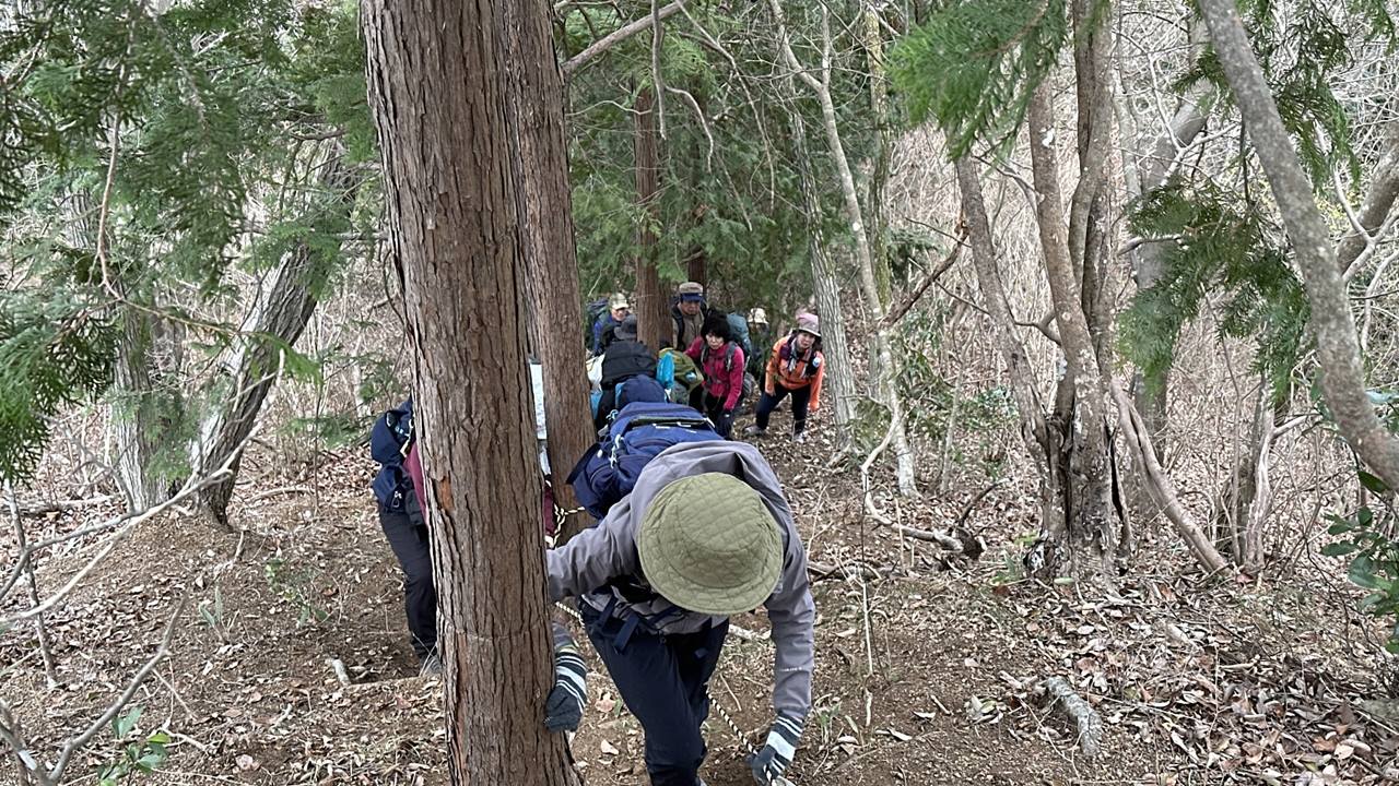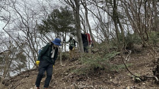 もうそこまで春が来ているのに、時折冷たい風が吹く一日でした。今回のコースは急登と急な下りが繰り返され、その合間の登山道は踏み跡もはっきりしない、まさにバリエーションコースといった感じのルートでした。