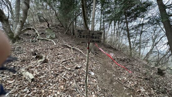 当初は綱之上御前山へ向かう左回りルートを予定していましたが、岩場の下りは危険ということで、逆回りに変更しましたが、念のために持参したロープを、ヨソ木山手前の急登で使用する羽目になりました。