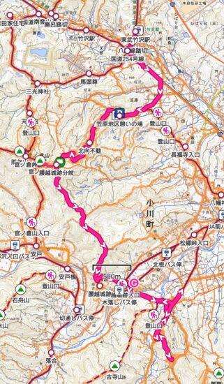 11:45昼食12:20ー腰越城跡12:50-13:47小川町の桃源郷