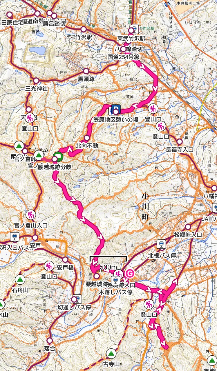 コース :東武竹沢駅9:10-諏訪神社9:20-北向不動9:57